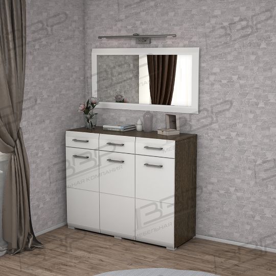 Практичный комод M17 изготавливается из МДФ имеет три выдвижных ящика и тремя створками, разделенных полками для хранения одежды и различных вещей,