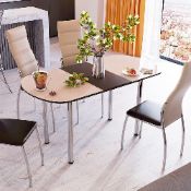 Контрастный стол «Оникс» отлично впишется в вашу кухонную зону. Благодаря металлической конструкции подстолья данная модель прослужит вам долгие годы. Столешница выполнена из МДФ со стеклом. Стекло неприхотливо в уходе и отлично гармонирует с другими текстурами.